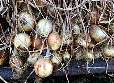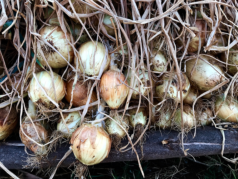 We grow a couple of hectares of onions commercially on Livingstone Fruit Farm. Here they are drying in the field before being stored.