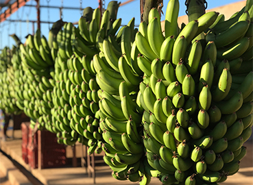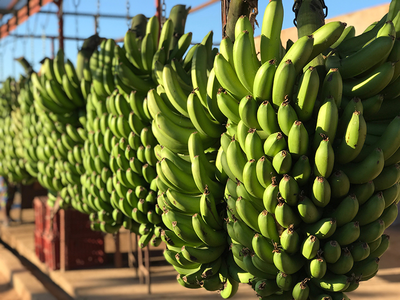 Bunches of bananas about to ripened in the cold rooms at Livingstone Fruit Farm, after which they are taken to town to be sold.