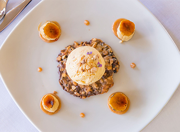 Bruleed Bananas & Dulce de Leche Ice Cream with a Mongongo Nut Florentine, a dessert I created for The Elephant Cafe in Livingstone.